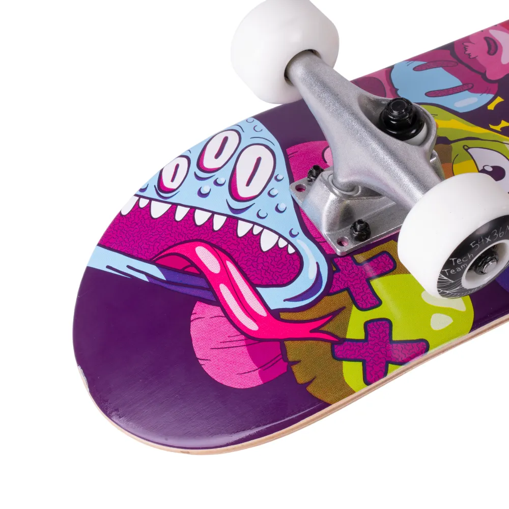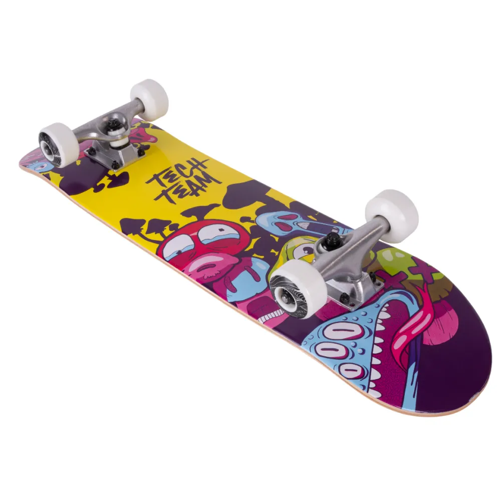 Добавьте яркости в свои ежедневные катания с помощью скейтборда Tech Team Aliens 2024 желтый. Этот продукт от компании Tech Team создан с учетом последних тенденций и технологий. Колеса из материала PU размером 54x36 мм и жесткостью 90А, в сочетании с подшипниками ABEC 9, обеспечивают плавность и стабильность движения. Дека из семи слоев русского клена размером 29.5”х7,5” и типом двойного концевого загиба (Double Kick) гарантирует уверенность в каждом движении. Черная шкурка с графикой на верхней части и яркий принт в желтых тонах с разноцветными монстрами на нижней части делают этот скейтборд неповторимым. С Tech Team Aliens 2024 желтый каждая поездка станет незабываемой!