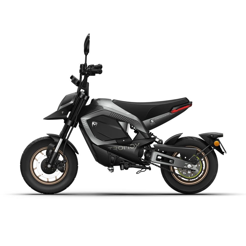 Серый электропитбайк Tromox по дизайну напоминают грозных ночных волков, способных на самые неосмысленные поступки. Первое, что бросается в глаза при знакомстве с техникой – дизайн, космический, устрашающий и молниеносный одновременно. Визуально байк выглядит мощно. В нем ощущается сила и скорость. И это правда. При производстве тс производитель предусмотрел минусы предыдущей линейки, учел пожеланий байкеров, сделал модель совершенствованной и непревзойденной.