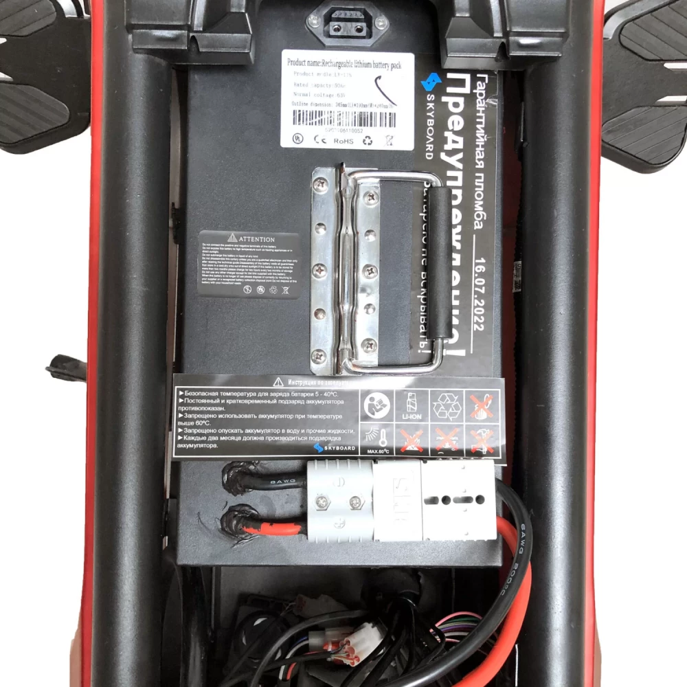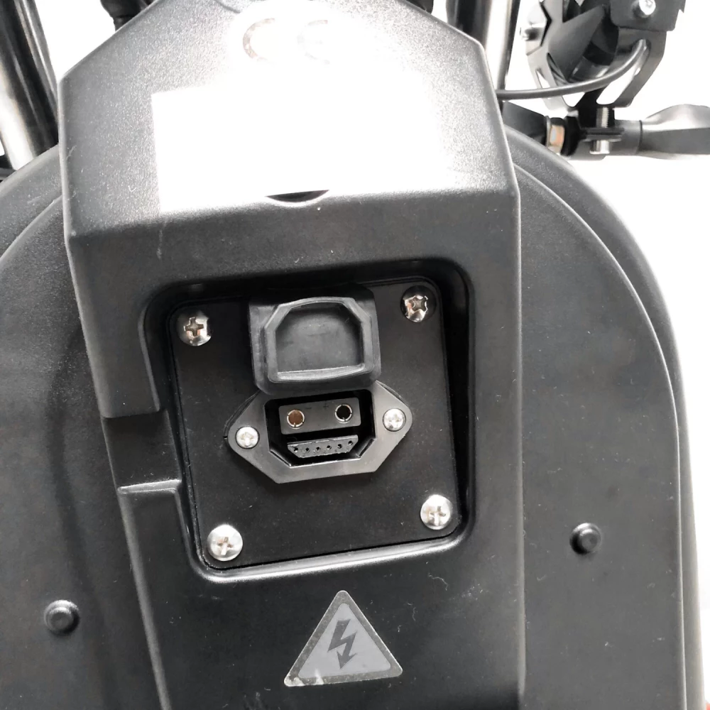 Он оснащен съемной батареей 50Ah 63V, также рассчитано дополнительное место для второй батареи 20-30A.