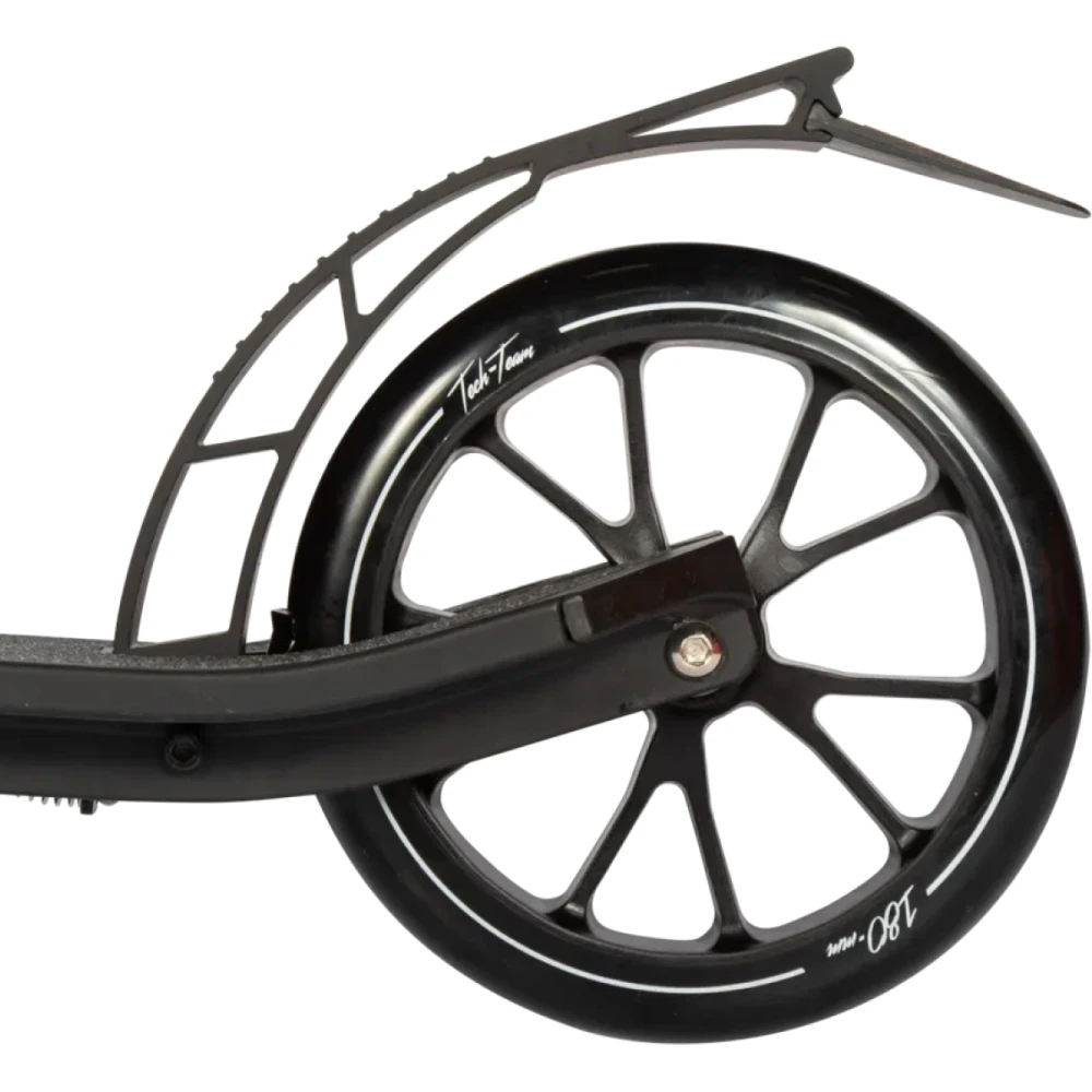 Удобная рулевая часть регулируется в трёх положениях - 750-820-890 мм, имеет широкий зажим, благодаря которому исключается люфт, являющийся главным источником посторонних шумов. Колесная часть – полиуретановая, мало стираемая, размерами 180 мм с подшипниками ABEC 7 Chrome. В сочетании с брендовой тормозной системой гарантирует безопасность, своевременность остановки и массу приятных впечатлений.