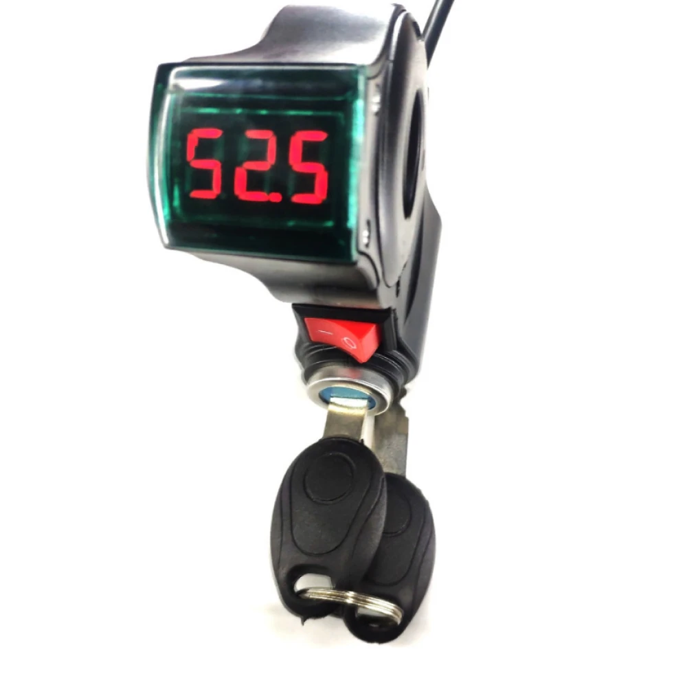 Вольтметр с замком зажигания и кнопкой для электросамокатов (кабель 2 метра)